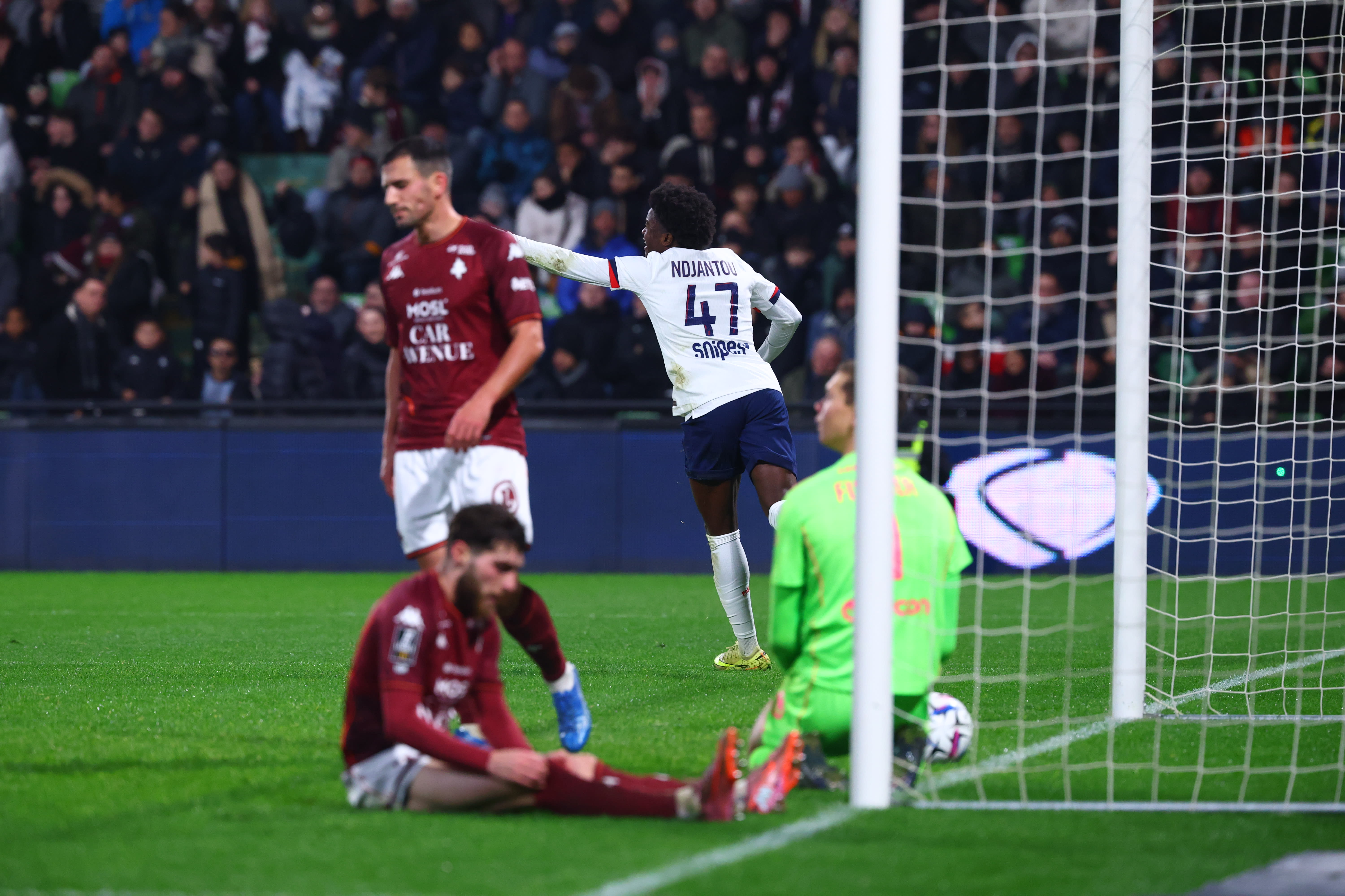 Quinze minutes plus tard, l’avant-centre portugais récidivait, cette fois-ci sur un centre de Lee Kang-In venu de la droite, et trompait le portier messin d’un coup de tête croisé imparable (0-1, 31e). Une ouverture du score logique pour les Parisiens, qui doublaient la mise moins de dix minutes plus tard lorsqu’Ibrahim Mbaye faisait la différence sur l’aile gauche avant de centrer à destination de Quentin Ndjantou, qui reprenait à bout portant et s’offrait son tout premier but en professionnel (0-2, 39e) !